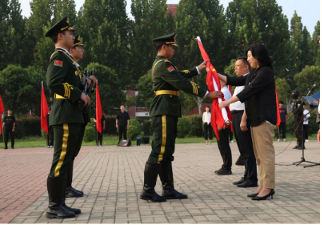 退伍学生代表、资环系学生会主席刘志毅发言。他表示会将军队中的所见所学,继续在学校和社会中发挥作用,以饱满的热情和坚定的信念,迎接新学期的挑战,迎接更加美好的明天。