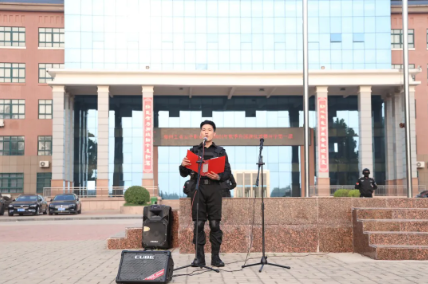 2023级学生代表、校学生会轮值主席万茜在国旗下以《以实践之行 赴青春之约 做出彩大学生》为题演讲。她表示会将个人发展与国家战略、时代需求相结合,为奋力推进中国式现代化建设河南实践贡献青春力量,努力成为堪当民族复兴重任的时代新人!