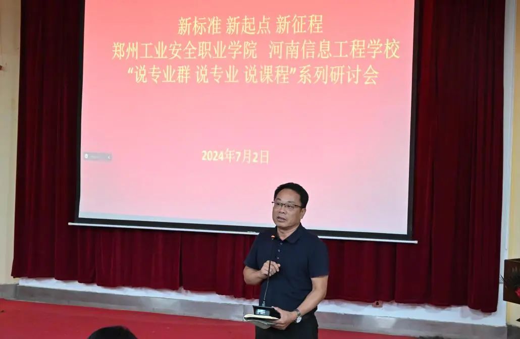 为深入学习贯彻习近平总书记对职业教育的重要指示批示精神和党的二十大精神,全面落实《关于推动现代职业教育高质量发展的意见》《关于深化现代职业教育体系建设改革的意见》,优化职业教育类型定位,推进河南教育强省建设,提升学校高质量内涵建设,进一步构建“3+1+N”专业群发展格局,7月2日,两校在北校区道德讲堂成功举办了“说专业群·说专业·说课程”系列研讨会,会议由副校长门雅范主持,校领导、两校全体中层干部及各教研室主任(教研组长)参加了会议。同时,会议特别邀请三位专家莅临现场对此次专业群建设工作进行指导。
