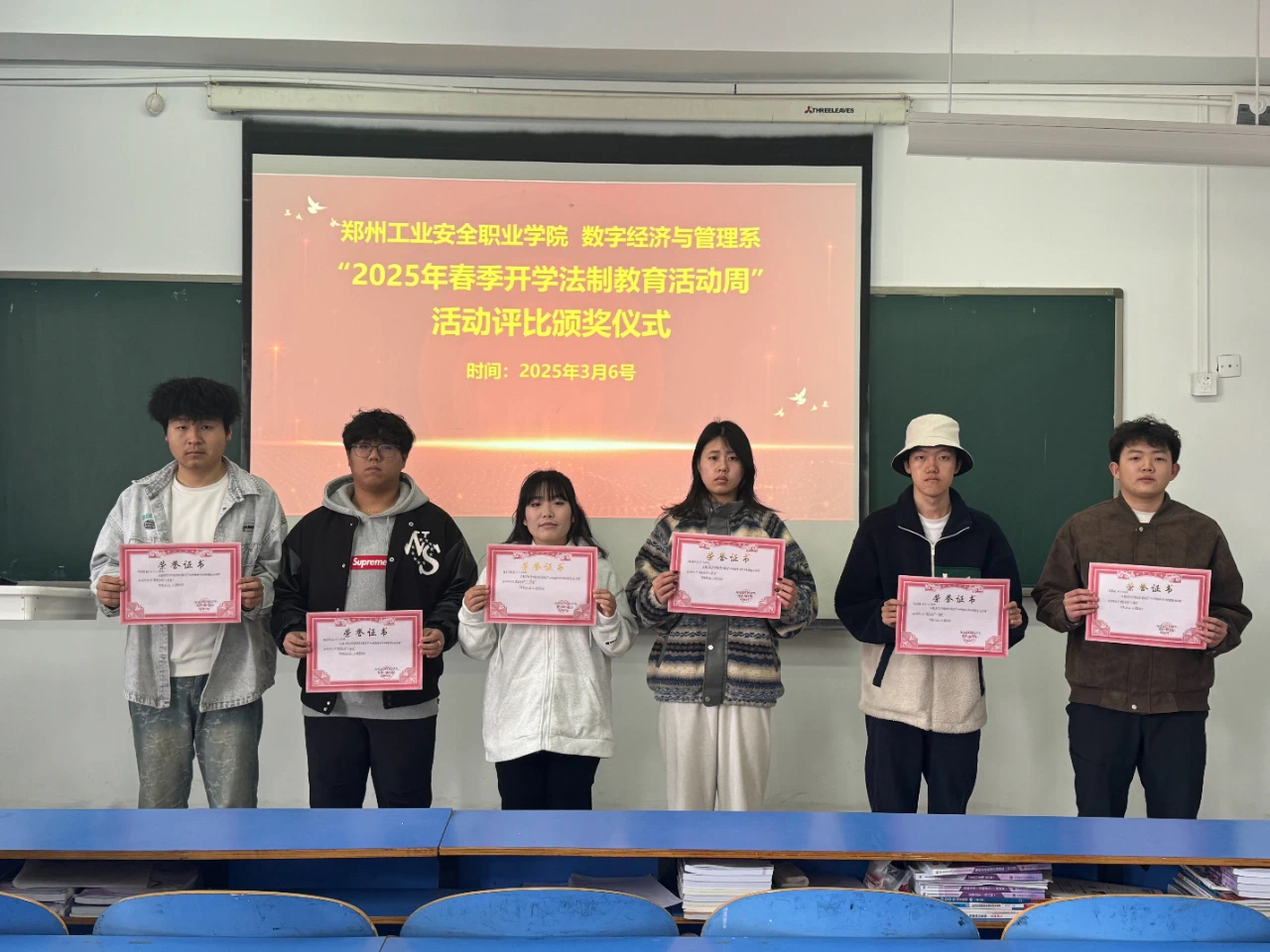经过系部专业评委团队的现场评比,一批优秀作品脱颖而出。3月6日,数字经济与管理系举办了活动评比颁奖仪式,对表现优异的班级和作品进行了表彰。获奖班级代表们表示,通过参与此次活动,不仅学到了丰富的法律知识,提高了法治素养,还培养了团队合作精神和创新能力。