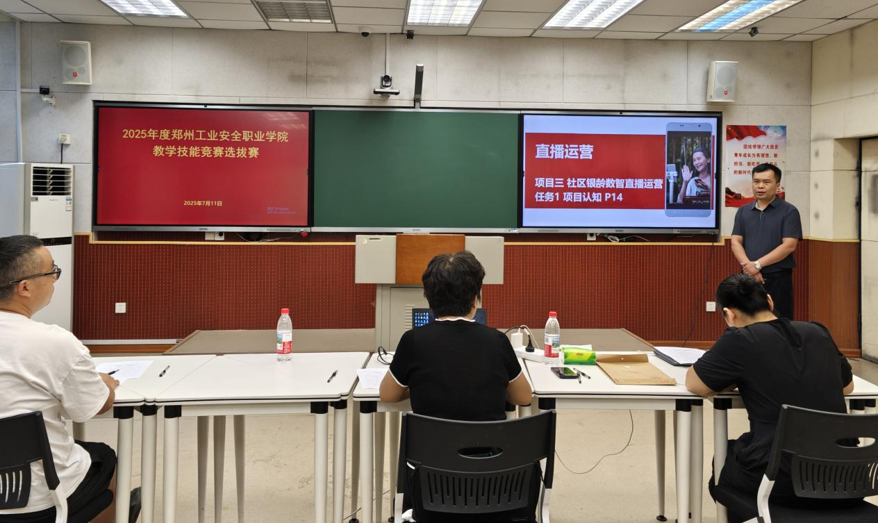 为深入贯彻落实习近平新时代中国特色社会主义思想,全面提升教师教学创新能力和育人水平,我校积极响应《河南省总工会 河南省教育厅 关于在全省教育系统举办2025年度教学技能竞赛的通知》(豫工文〔2025〕41号)文件精神,于7月11日在金水校区成功举办2025年教学技能竞赛选拔赛。本次比赛由技能竞赛办公室组织,来自各教学院系(部)的9名骨干教师同台竞技,展现教学风采。