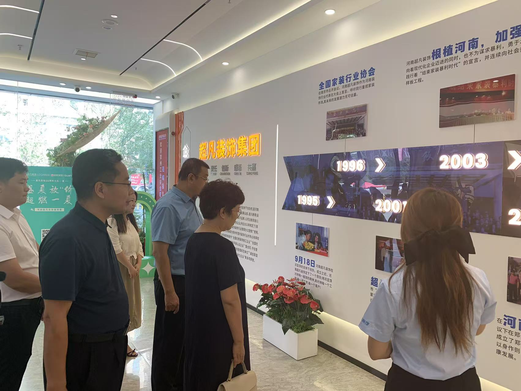 调研组一行实地考察了超凡装饰设计中心、施工展示工地及材料展厅,系统了解企业发展历程与全产业链运营模式。通过沉浸式观摩,团队深入感知设计行业从创意构思到工程落地的全流程实践,为后续校企合作路径规划提供现实依据。
