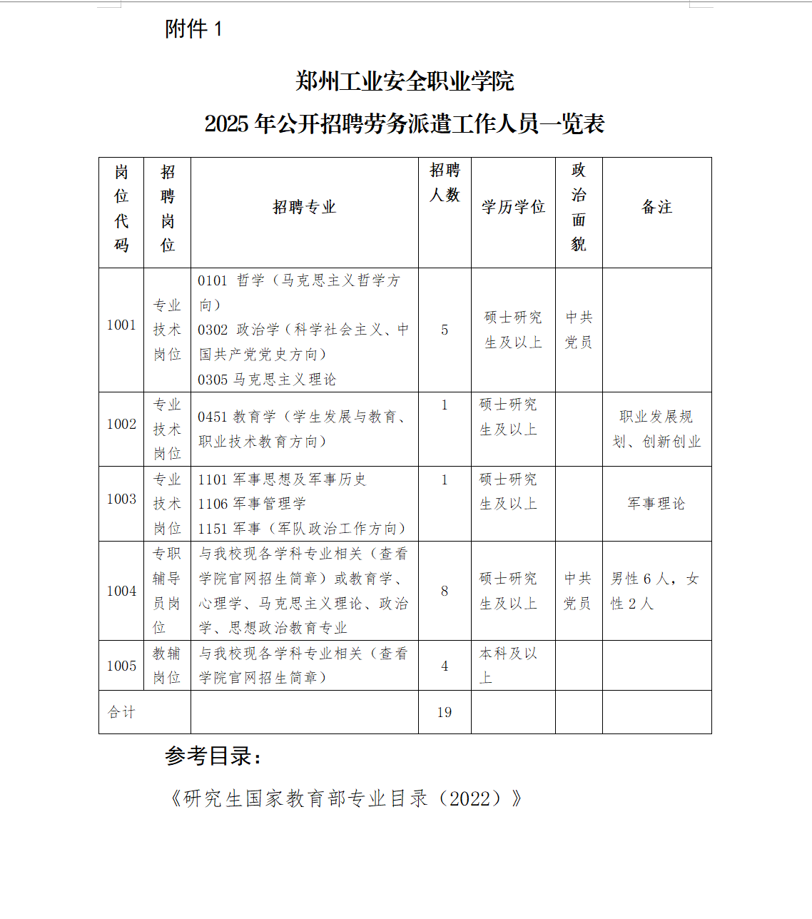 根据《中共河南省委组织部 河南省人力资源和社会保障厅关于印发<河南省事业单位公开招聘工作规程>的通知》(豫人社〔2015〕55号)等有关文件规定,yl6776永利集团2025年拟面向社会公开招聘派遣制工作人员19名。结合学院实际,特制定本公开招聘方案。 一、 学校简介yl6776永利集团成立于2004年5月,是经河南省人民政府批准、国家教育部注册备案的一所专科层次的公办普通高等职业院校,隶属于河南省教育厅。主要培养德、智、体、美、劳全面发展,服务新型工业化和信息化高质量发展,适应未来行业发展急缺的高素质复合型技能人才。学校目前有新郑校区和金水校区两个校区,新郑校区位于河南省新郑市郭店镇卢家桥,金水校区位于郑州市金水区鑫苑路10号。两校区占地总面积831.81亩,建筑面积约24万平方米,校内各类实训室120多个、校外实习基地52个,同时校内建成ICT学院、大数据学院、智能制造学院、现代电商服务学院、云智商学院等现代化实习实训中心。在校生约20000余人。随着职业教育快速发展,学院立足工业领域优势,围绕“安全”品牌特色,以工业互联网为基础,以新一代信息技术为核心,紧密围绕产业布局,科学制定五年发展规划,建立了独有的“3+1+N”专业群动态调整体系,充分发挥“智能制造、现代通信与网络、软件与大数据技术”三大专业群“头雁作用”,扩大“安全技术”特色专业群品牌效应,带动“N”个重点专业群梯次建设,完成了智能制造、现代通信与网络、软件与大数据技术、安全技术、网络经济、新能源汽车服务、文化创意、资源环境工程等八大专业群组建任务,通过与产业头部企业和科研机构合作,将现有专业集群与产业链条充分衔接,持续提高复合型技术技能人才培育能力、服务产业发展能力,推动工业互联网+安全领域产业更优更好发展。设有软件技术系、机电工程系、信息工程系、安全工程系、艺术设计系、数字经济与管理系、资源与环境工程系、马克思主义学院、基础部、公共体育部等10个教学单位,开设有安全技术与管理、智能控制技术、数控技术、机械制造及自动化、机电一体化技术、工业机器人技术、电气自动化技术、无人机应用技术、新能源汽车技术、电子信息工程技术、物联网应用技术、计算机网络技术、软件技术、数字媒体技术、大数据技术、云计算技术应用、信息安全技术应用、人工智能技术应用、工业互联网技术、现代通信技术、大数据与会计、网络营销与直播电商、商务数据分析与应用、现代物流管理、视觉传达设计、数字媒体艺术设计、室内艺术设计、动漫设计等56个专业。学院始终坚持服务河南省工业和信息化高质量发展需求,打造未来行业发展急缺的复合型技能人才,为河南经济发展特别是工业数字化和安全技术发展提供高素质技术技能人才。 二、公开招聘工作组织领导学校成立由主要领导为组长,负责人事、纪检班子成员为副组长,人事、教学、纪检等相关部门负责人为成员的yl6776永利集团公开招聘工作领导小组。小组下设办公室,办公室设在人事处,具体负责公开招聘的组织、实施和协调工作。学校纪委对招聘工作实施全程监督。 三、招聘岗位、专业及人数本次面向社会公开招聘劳务派遣工作人员19名,其中专职教师7人,专职辅导员8名(男性6人,入住男生宿舍管理;女性2人,入住女生宿舍管理),教辅4名,具体专业详见《yl6776永利集团2025年公开招聘劳务派遣工作人员一览表》(附件1)。 四、招聘条件(一)应聘人员应具备的资格与条件1.具有中华人民共和国国籍;2.遵守中华人民共和国宪法和其它基本法律;3.拥护中国共产党的领导,政治立场坚定,热爱教育事业,品德高尚,具有良好的品行;4.身心健康,具有正常履行职责的身体条件;5.年龄不超过35周岁(1990年1月1日以后出生);6.岗位所需的专业和其他条件详见附件1。(二)有下列情形之一者不得应聘1.因犯罪受过刑事处罚、刑事处罚期限未满、涉嫌违法犯罪正在接收调查、被开除中国共产党党籍人员和被开除公职人员;2.尚未解除党纪、政纪处分或正在接受纪律审查和监察调查的人员、被依法列为失信联合惩戒对象的人员;3.近5年内在公务员招录、事业单位公开招聘考试中被认定有舞弊等严重违反招聘纪律行为的人员;4.现役军人及未满规定最低服务年限的事业单位工作人员;5.国家和省另有规定不得应聘到事业单位的人员。 五、招聘工作程序(一)公布招聘信息学院公开招聘派遣制工作人员在学院网站(/)发布招聘信息。(二)报名和资格审查1. 报名采取网上报名的方式。每人限报1个岗位。报名人员于2025年8月23日8:00至2025年8月28日18:00,登陆yl6776永利集团招聘系统https://reg_examinee.atahn.com/exam/1755659341/index.html选择报考岗位,按要求填报相关信息,并上传本人近期正面免冠证件电子照片以及相关证件。报名系统技术支持电话:0371-65095379(工作日9:00——18:00)2. 报考资格初审。