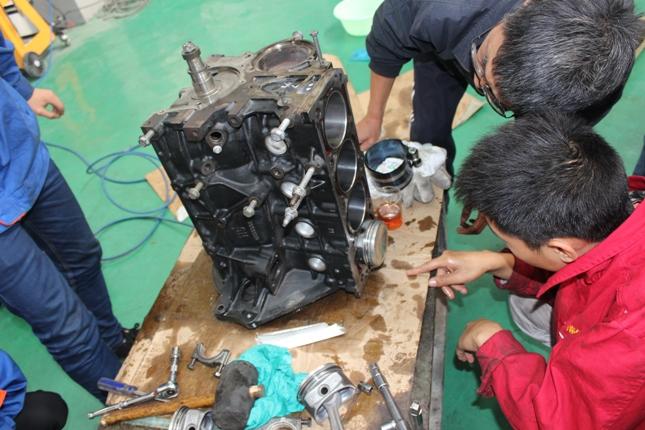 在校领导的大力支持和党政办公室的积极配合下,我校机电工程系汽车运用与维修专业14-1班学生于10月26日至11月1日进行了为期一周的汽车大修实战训练。11月2日圆满地完成了本次实战任务。 11月3日在我校汽车实训中心隆重举行了汽车大修实战训练点火仪式,莅临点火仪式的校领导有:校长朱鸣、党委书记寇守峰、副校长张立、工会主席王雪瑞。